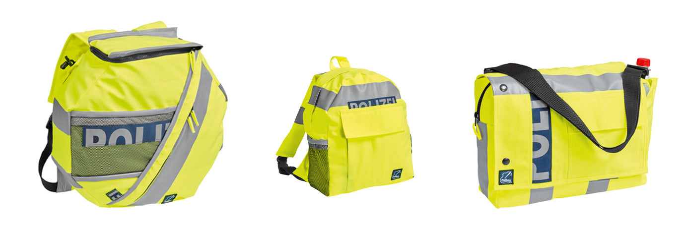2016 durften wir die Fertigung von drei Polibag2 Modellen übernehmen, die Prof. Glomb mit ihrem Studiengang entworfen hatte für eine tolle Upcyclling Aktion des Innenministeriums. Hier wurden nicht mehr benötigte Wetterschutzjacken der Polizei umgearbeitet zu unterschiedlichen Taschenmodellen, die aufgrund des neongelben Stoffes sowie des vorhandenen Reflexmaterials die verbesserte Sichtbarkeit im Dunkeln fördern sollen. Zum vollständigen Bericht auf der Seite des LZN geht es hier: zum Bericht. Hier einmal die Bilder der Polibags, die wir-sind-sichtbar nähen durfte:
